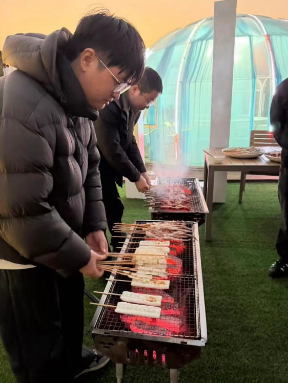 فعالیت تیم سازی همچنین شامل کباب سلف سرویس برای کارکنان بود. در این مراسم، همه با هم کار کردند، مواد اولیه و آشپزی را با میزهایی پر از مواد مختلف تازه و غذاهای خوشمزه تهیه کردند. کارمندان کنار هم نشسته بودند و از کباب کردن لذت می بردند در حالی که در مورد کار و زندگی گپ می زدند و خنده و شادی فضا را پر می کرد. همه عینک های خود را بالا بردند و با خوشحالی چت کردند و فضای کاری هماهنگ و گرم تیم Yongjun Textile را به طور کامل نشان دادند.